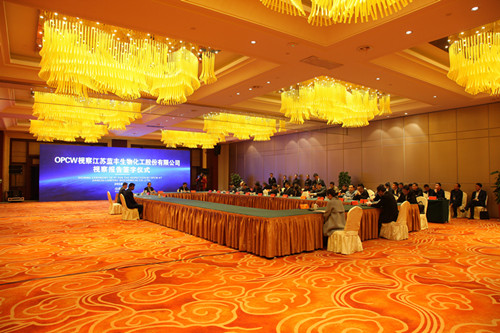 11月1日下午,OPCW組織視察江蘇藍豐生物化工股份有限公司簽字儀式在新沂戴斯酒店舉行。相關國家、省、市、新沂市領導及禁化武專家,公司董事長楊振華、總經理劉宇等出席會議。國家代表付海東主持會議并簡要介紹本次核查過程及核查報告情況,視察領隊加布里埃爾、江蘇省工信廳副廳長、江蘇省禁化武辦主任高清、徐州市政府辦公室副主任黃立超、新沂人民政府市長陳堂清、公司總經理劉宇先后講話。劉總在講話中首先代表公司對兩位視察員不顧旅途疲勞,克服時差,在視察期間表現出嚴謹、高效的工作作風和高度的敬業(yè)精神表示由衷的敬意!對國家、省、市、新沂市領導及相關部門和各位專家在此期間給予的幫助表示誠摯的謝意!